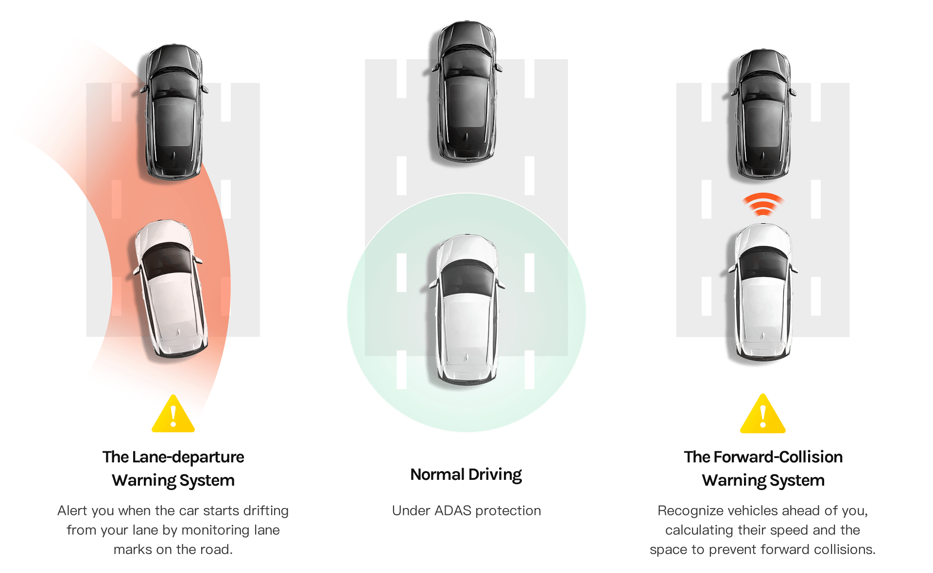 The ADAS detects your surroundings and uses voice alerts to warn you of safety problems.
